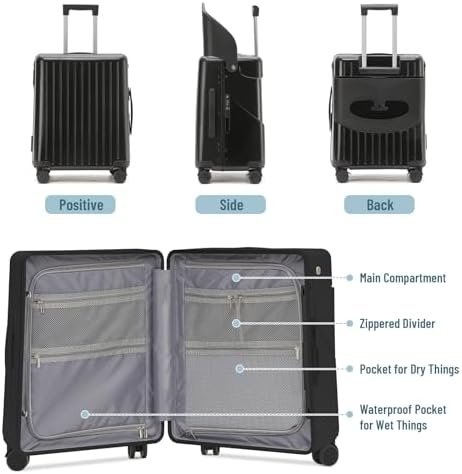 Multi-Layer Organization: Measuring 20 inches, this suitcase offers ample interior space with a waterproof compartment. The interior includes distinct sections for organizing different types of items, making it highly practical
