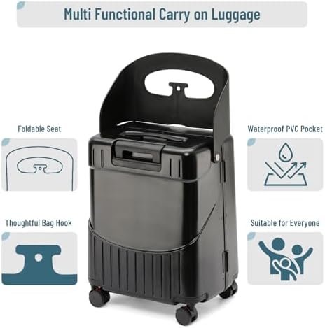 Seatable Carry-On Luggage: This carry-on suitcase doubles as a seat, featuring a foldable backrest that provides temporary seating while waiting for your flight. The backrest offers simple, relaxing support and folds away for convenient storage when not in use