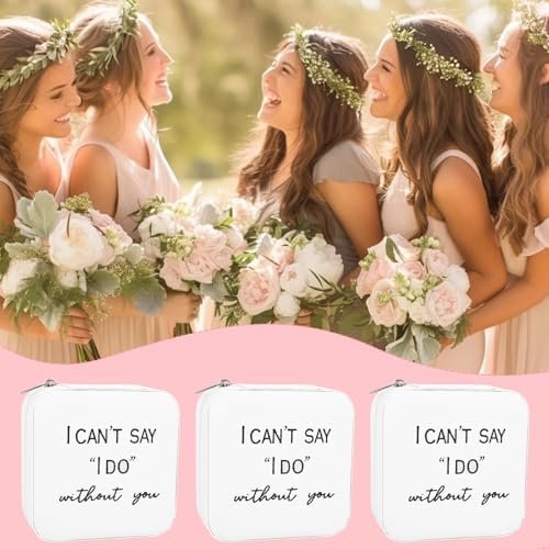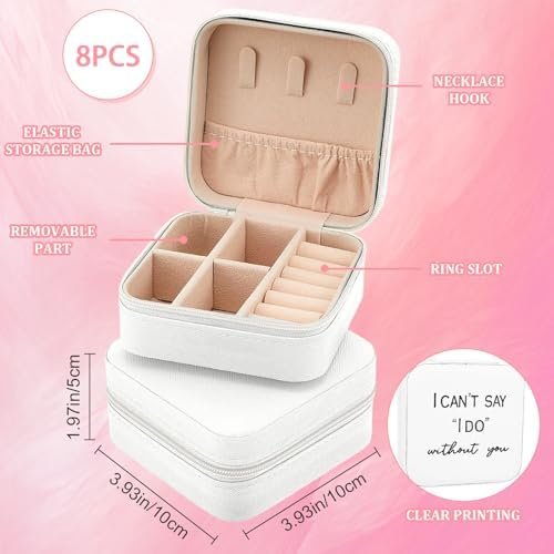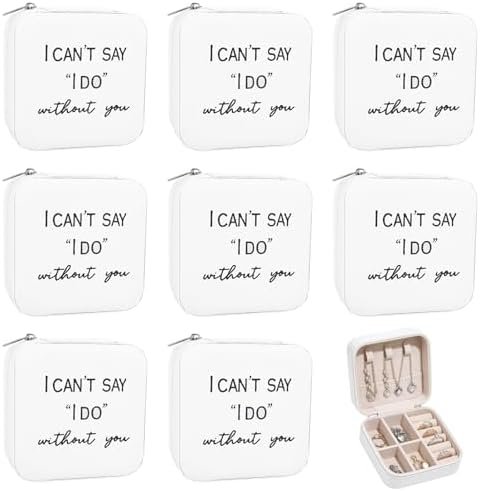 Meaningful Keepsake Bridesmaids Gifts: Crafted for moments that matter, this set of 8 bridesmaid mini travel jewelry boxes carries the heartfelt message “I Can’t Say I Do Without You,” making each jewelry organizer a symbol of gratitude, love, and lasting friendship. A perfect way to ask your girls to stand beside you—and a treasure they’ll keep long after the wedding