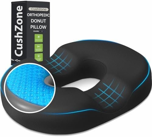 [Premium Memory Foam & Cooling Gel]: CushZone donut pillow floor cushion measures 17″ x 13.5″ x 2.8″. Made with premium high density memory foam and cooling gel, CushZone donut pillow seat cushion effectively provides support and stays cool even after prolonged use. The gel layer efficiently dissipates heat, ensuring a comfortable seating experience