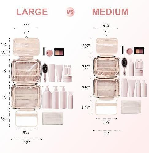 LARGER CAPACITY & CONVENIENCE: 12 x 9 x 4.5 inches (rolled), ample space for toiletries, makeup, pills, and more; The 360° metal hook enables versatile hanging, saving counter space; Transparent inner provides easy, full-view access to your belongings.