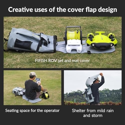 Customized Construction: Specially made for the FIFISH ROV and its accessories, the outer layer of the backpack is made out of a TPU double-sided waterproof material that effectively protects the tether spool and remote controller from rain and storms.