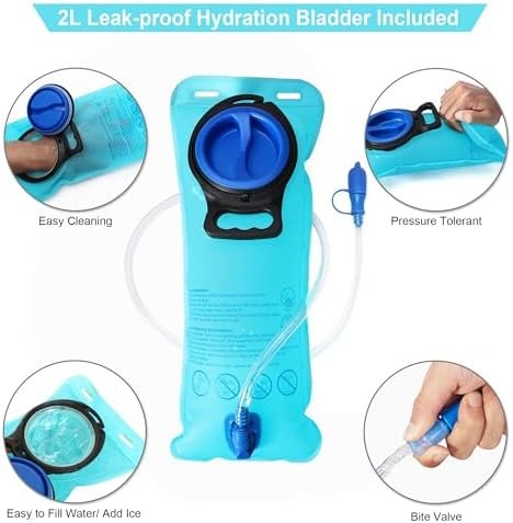 [2L Large Hydration Bladder]: Includes a food-grade, BPA-free and odorless water bladder. Leak-proof performance is good with its thickened design