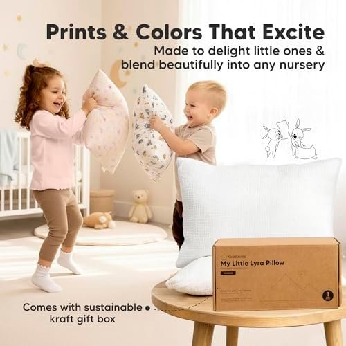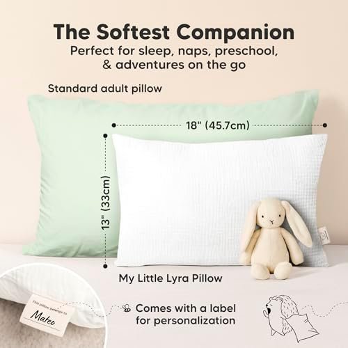 13×18 Toddler Pillow with Pillowcase – Highly anticipated addition to KeaBabies Toddler Pillows, My Little Lyra muslin cotton pillowcase with toddler pillow offers enhanced breathability and ergonomic support for sleep, travel and daily comfort.