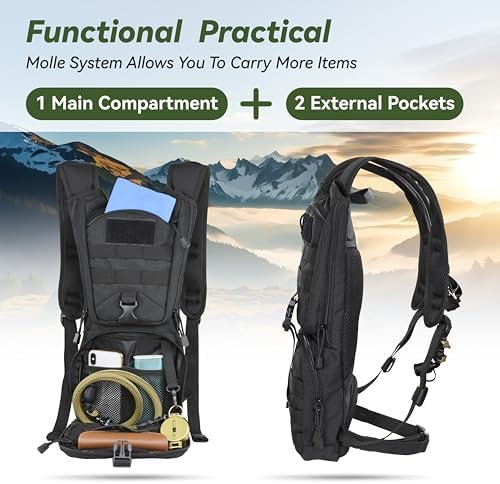 Versatility: Frees your hands while drinking, this tactical hydration pack is your perfect choice for short trip, camping, bike riding, walking, mountaineering, kayaking, skiing, snowboarding. A decent holiday gift for family and friends who love outdoor sports.