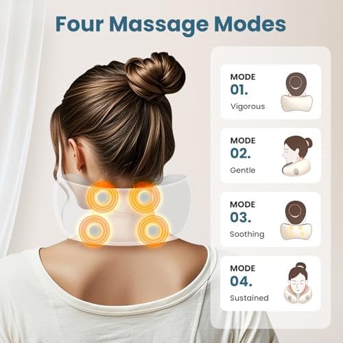 4 Massage Modes for Deep Relaxation : Turn on or off with a simple 2-second press. The neck massage pillow have four embedded liquid silicone massage points use dual-channel vibration technology to penetrate deep into muscles and relieve tension. Switch modes easily to find the perfect massage for your needs. It helps with sleep and enables you to sleep more soundly during your journey.