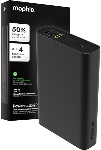The Mophie Powerstation Fast 20,000mAh is a high-capacity portable charger designed to keep your devices charged and ready wherever you go. With a 20,000mAh internal battery, it provides up to four full phone charges, ensuring you stay powered throughout your day.