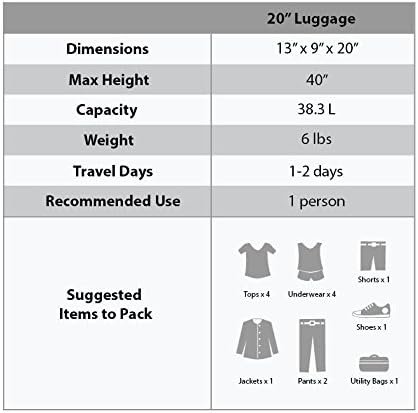 This carry-on is made of polycarbonate/ABS. This material is extremely lightweight, durable, and protects the contents of your luggage. Multi-directional double spinner wheels rotate 360 degrees for easy maneuverability. This luggage allows you to pack more while avoiding the excess weight surcharges imposed by most airlines. Multi-directional spinner wheels for easy maneuverability Modern internal chrome telescoping handle with push button handle. Interior mesh and zip pocket and elastic pocket * 5 year * 22″x13. 5″x9″ (with wheels) weighs 6. 5 lbs