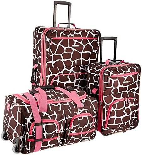 This beautiful deluxe 3-piece expandable luggage set is manufactured with a patented heavy duty EVA-molded hi-count fabric. This set is perfect for the serious & experienced traveler! Manufactured with the very best heavy duty polyester and PVC backing, this luggage set is designed for the traveler on the go and comes with two expandable uprights and a 22” rolling duffle bag. It comes packed with features including: an inside retractable handle, EZ-Roll in-line skate wheels, back zippered secured pockets, top and side comfort grip handle, stability bars at the bottom to avoid tilting, and locks and keys. Upright features include: Clear in-line skate wheel system for smooth ride, push-button self-locking internally stored retractable handle system, ergonomic and comfortable padded top and side grip handles, two front full size zipper-secured pockets, three internal organizational pockets for all your traveling needs. Each upright’s interior is fully lined with a durable and elegantly imprinted lining. 19-inch Carry-on Upright: 20 inches x 12. 5 inches x 7. 5 inches (with wheels) expandable to 10 inches deep, weighs 6 lbs. 28-inch Upright: 28 inches high x 18 inches wide x 12 inches expandable to 14 inches deep, weighs 9 lbs. The matching duffel: 22 inches long x 11 inches wide x 12 inches high, weighs 4.45 pounds.