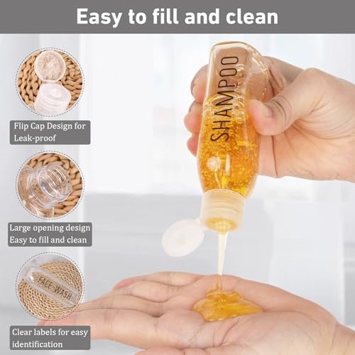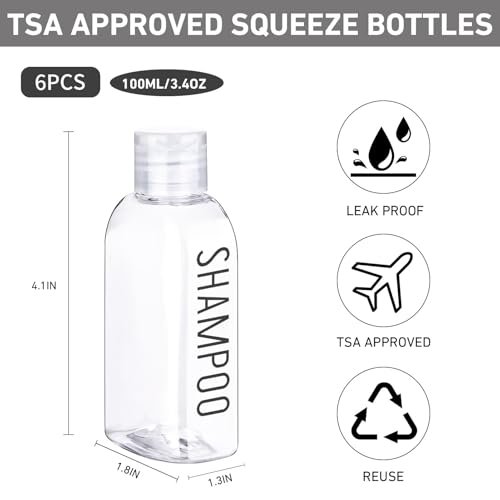 TSA-Approved Bottles: These 3.4-ounce travel toiletry bottles meet TSA carry-on regulations for a wide range of liquids, making them a must-have travel companion for your preferred shampoo, conditioner, body wash, lotion, and other toiletries.