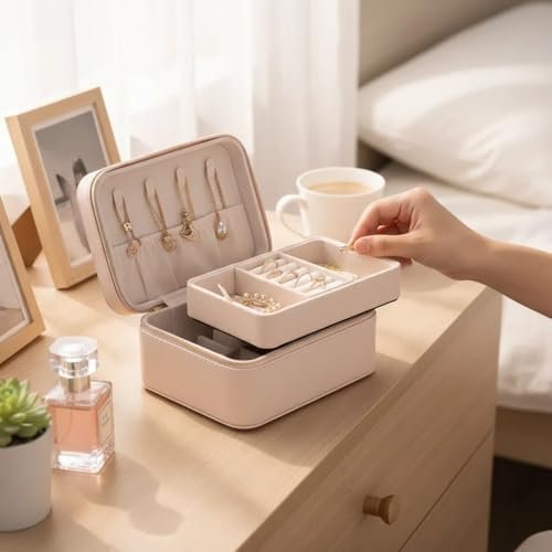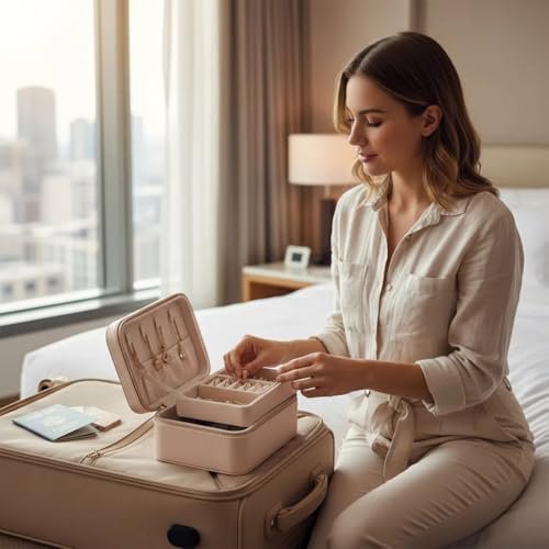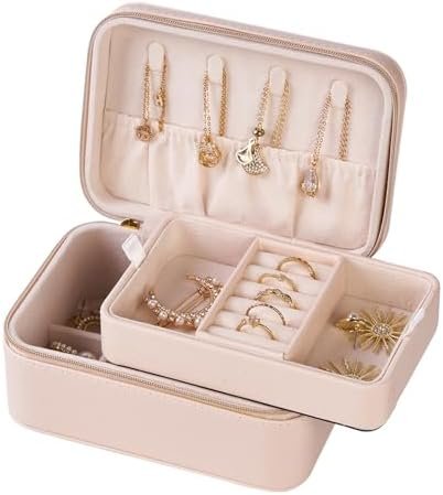 HIGH QUALITY PU PREMIUM LEATHER: The outer layer of the double-layered travel jewelry box is made of premium leather waterproof material, and the inner layer is soft velvet, which protects your jewelry from scratches, dust and damage. Sturdy double zippers ensure safe storage, convenient to put in your suitcase on weekend camping trips or business trips without damaging your jewelry.