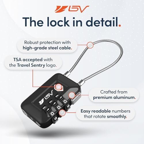 Resettable to 1,000 Possibilities – Set a combination for your backpack lock that you won’t forget from 1.000 possible combinations. BV travel locks tsa approved with multiple possibilities.