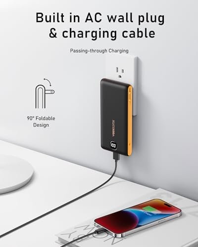 [AC Wall Plug Power Bank] This portable charger built in AC Wall plug, compatible with iPhone, Android, and USB C devices. The built-in AC Wall plug allows you to recharge directly from the wall outlet. No need to carry charging cables for your smart devices anymore, travel charger for multiple devices, and your best travel accessories for your smart devices