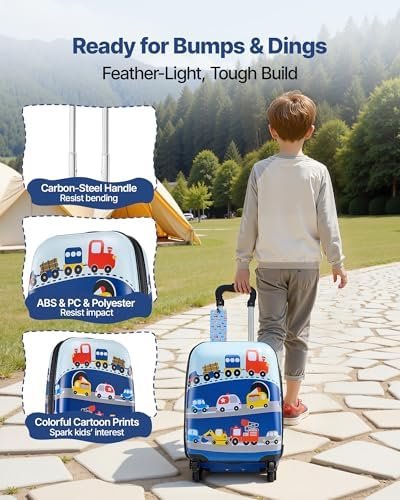 Lightweight and Durable: Crafted from durable ABS, PC, and polyester, this kids carry on luggage set is lightweight and tough. Fun designs like bees, trucks, and unicorns add excitement to every trip